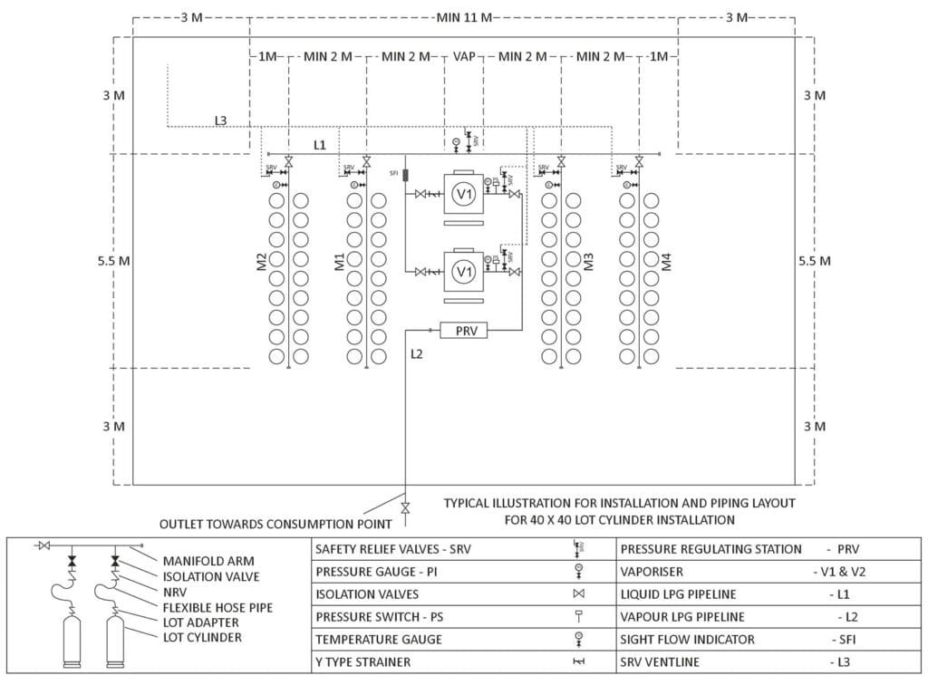 Typical illustration for installation – Piping layout for 40 X 40 LOT cylinder Installation